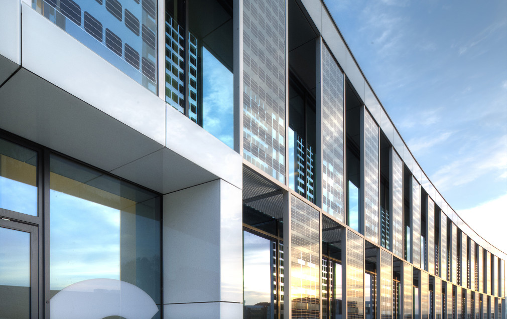 Glas ist ästhetisch und vielfältig einsetzbar. Als wasserdichte Dachpfanne lassen sich Glas/Glas Module fast unsichtbar in Dachkonstruktionen einfügen. Sie können in Gebäude-Fassaden integriert werden und ermöglichen eine gezielte Steuerung der Lichtdurchlässigkeit.